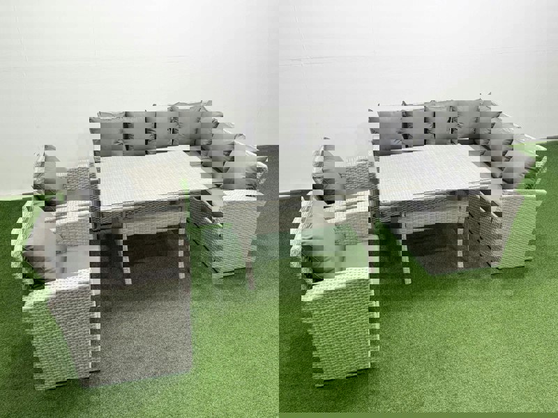 Create a refined outdoor setting with this deluxe high back rattan corner sofa set, designed for relaxed dining and sociable moments on the patio or in the garden. Made from high quality PE rattan with a durable galvanised steel construction, it offers a sturdy feel and is suitable for outdoor use all year round.