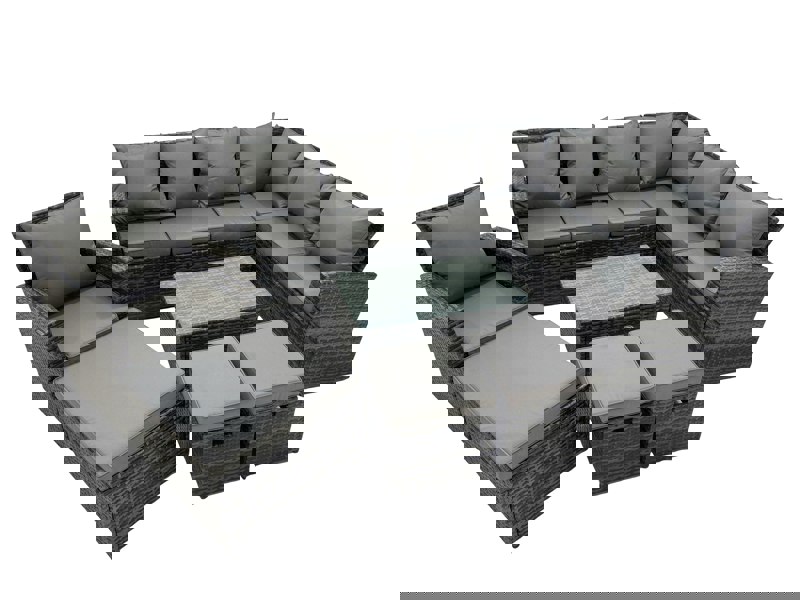 Designed for flexible living, this patio corner sofa set is suitable for both indoor and outdoor use, making it an easy choice for a patio, balcony or conservatory. With its dark grey mixed rattan and matching dark grey fabric, it brings a refined blend of country chic and modern minimalism to your space.