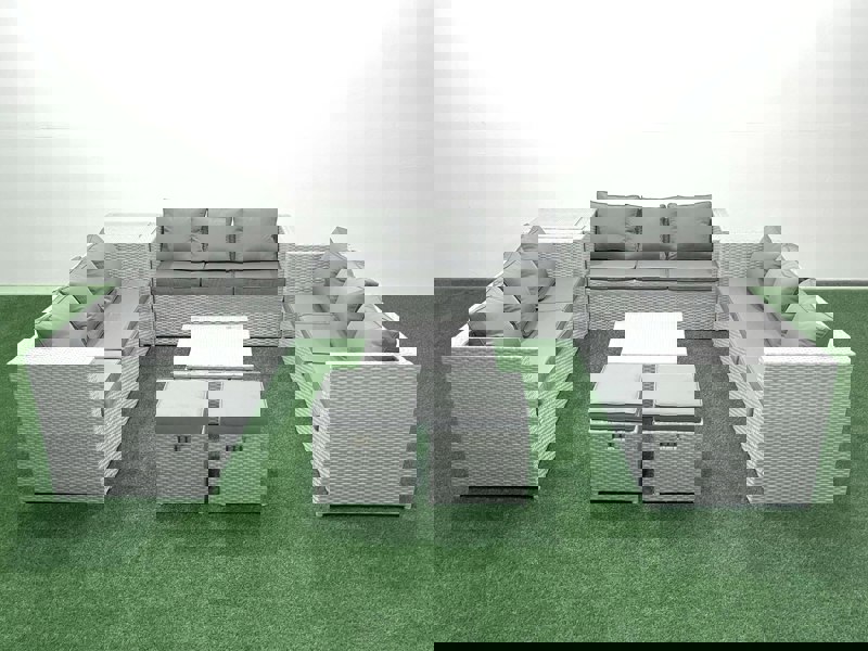 Finished in light grey mixed rattan with dark grey fabric, the set combines a modern look with practical comfort. Seat cushions are 8cm thick, paired with soft pillow back cushions, while removable cushion covers make everyday upkeep simpler.
