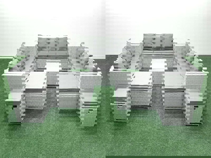 Designed for relaxed outdoor living, this rattan garden furniture set brings generous seating to your patio or garden. Crafted from top-notch PE rattan with a robust galvanised steel structure, it is made for strength and lasting performance outdoors throughout the year.