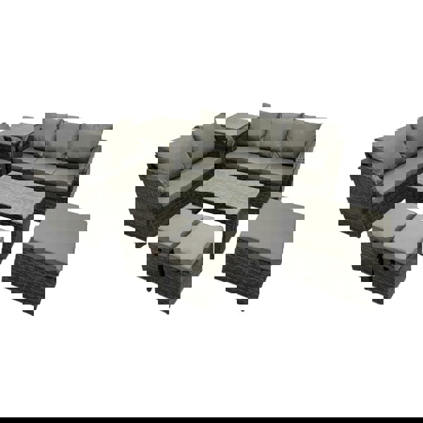 Enhance your garden, patio or porch with this elegant rattan furniture set, designed to be rearranged to suit the occasion. Made with high-quality polyethylene rattan and supported by rust-resistant galvanised steel, it offers a practical outdoor seating solution with a considered, adaptable layout.