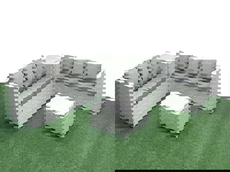 Create a refined outdoor seating area with the Fimous rattan garden furniture set, designed for patios and gardens. Made with light grey mixed PE rattan and paired with dark grey fabric cushions, it brings a coordinated look to everyday lounging and hosting.