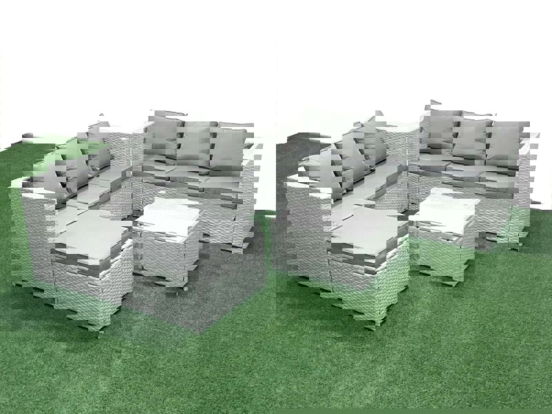 Create a refined outdoor lounge area with the Fimous rattan garden furniture set, designed for patios and gardens. Made with light grey mixed rattan and paired with dark grey fabric, this set brings a considered look to everyday outdoor living, from relaxed mornings to evening entertaining.