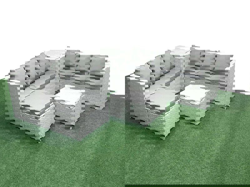 Finished in light grey mixed rattan with dark grey fabric, the set brings a clean, contemporary look to your space. Comfort is prioritised with 8cm thick seat cushions and soft pillow back cushions, while practical details such as removable cushion covers help keep everyday upkeep simple.