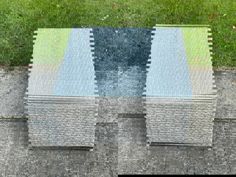 Designed for outdoor living, this square coffee table brings a clean, contemporary look to your garden or patio. Finished in light grey PE rattan, it is made to suit everyday use outside, while the clear tempered glass top creates a practical surface for drinks, snacks and decorative pieces.