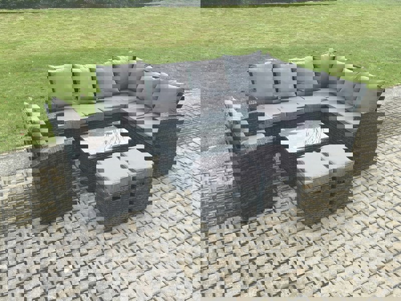 Built with a galvanised steel tube frame and powder coating to help prevent rust, the set is made for outdoor use all year round. It is supplied flat packed for easy assembly and includes cushions with removable covers for straightforward upkeep.