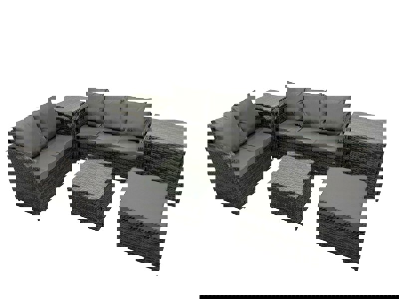 Crafted with high quality PE rattan and a durable galvanised steel construction for sturdiness and long-lasting use, the set arrives flat packed and is described as easy to assemble. Comfort is enhanced by an ergonomic high back and declining design, with supportive seat and back cushions for everyday lounging.