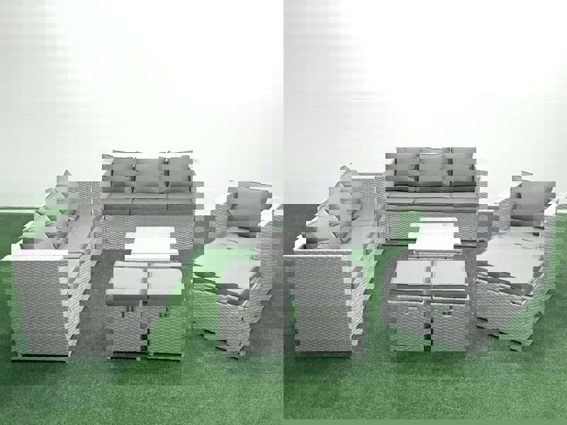 This deluxe rattan sofa set is designed to elevate patio and garden seating, offering a coordinated space for relaxing and entertaining outdoors. Made with light grey mixed rattan and finished with dark grey fabric, it brings a considered look to your outdoor setting.