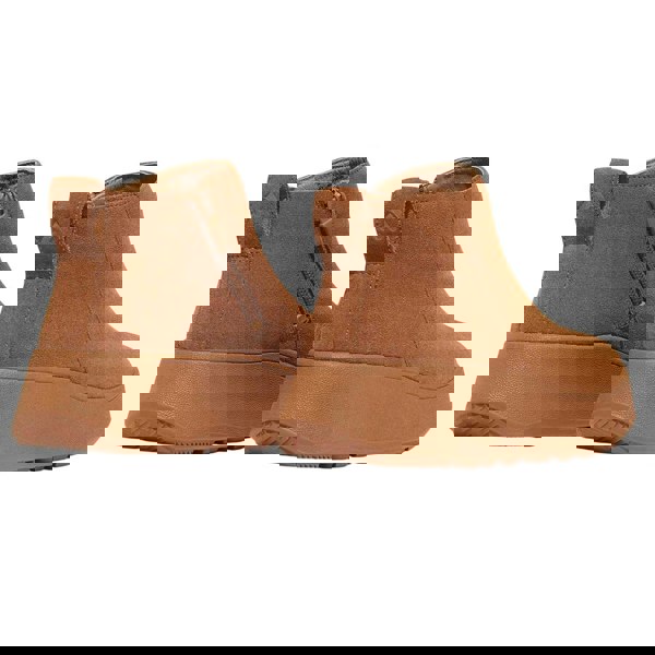 These women’s ankle boots come in a plain tan finish with a flatform sole and a round toe. The upper is made from suede, paired with a soft midsole and a synthetic outsole. A side zip fastening sits alongside a slip-on design for easy on and off, while a pull tab adds a practical finishing detail.