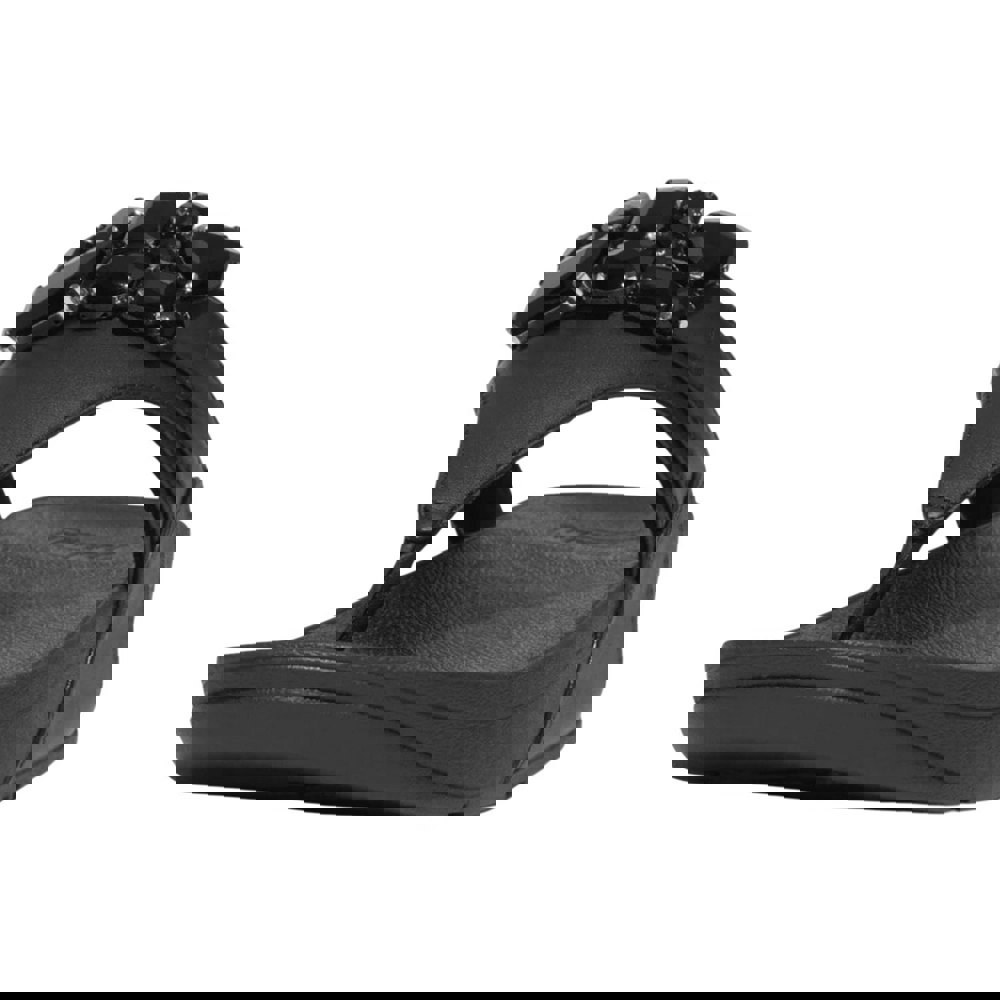FitFlop Women’s Lulu Leather Sandals in black combine a soft leather upper with a breathable microfibre lining. The flat profile and slip-on fastening keep the look clean and easy to wear, while the post toe style provides a classic sandal shape.