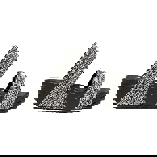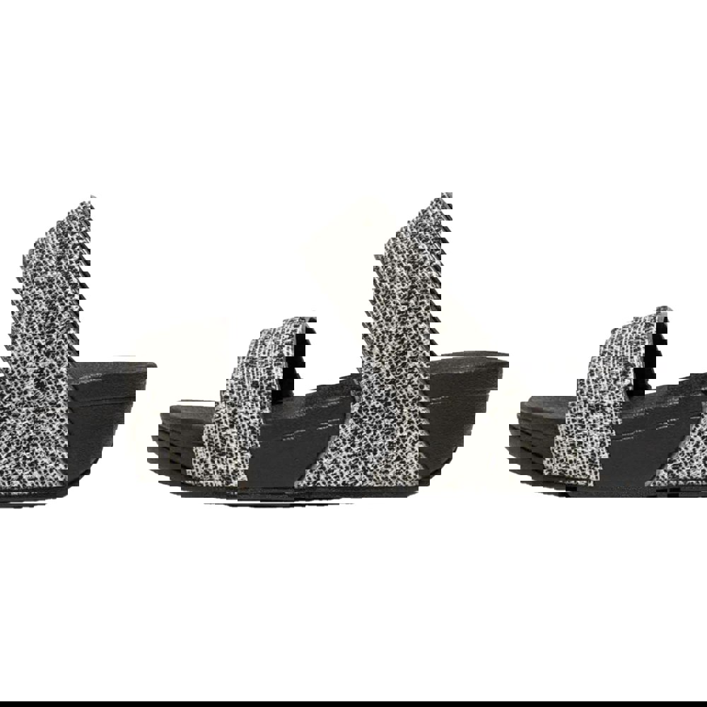 These women’s Lulu sliders combine a padded upper with a shimmer weave finish for a textured look. The upper uses fabric and faux leather, paired with an open toe and a low wedge profile. A double-strap front keeps the design clean and structured, while the slip-on fastening makes them easy to wear.