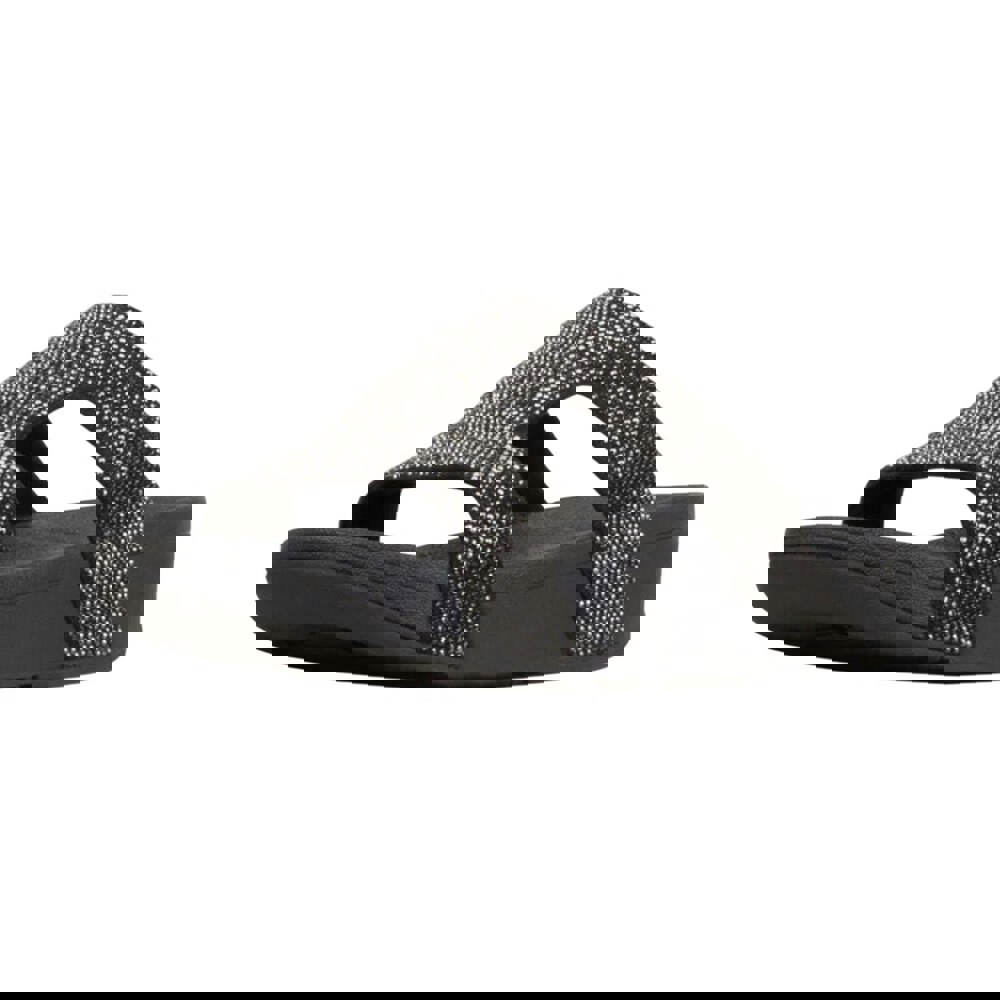 Crystal embellishment adds detail to the design, while the rubber outsole is slip resistant. The material technology is described as soft.