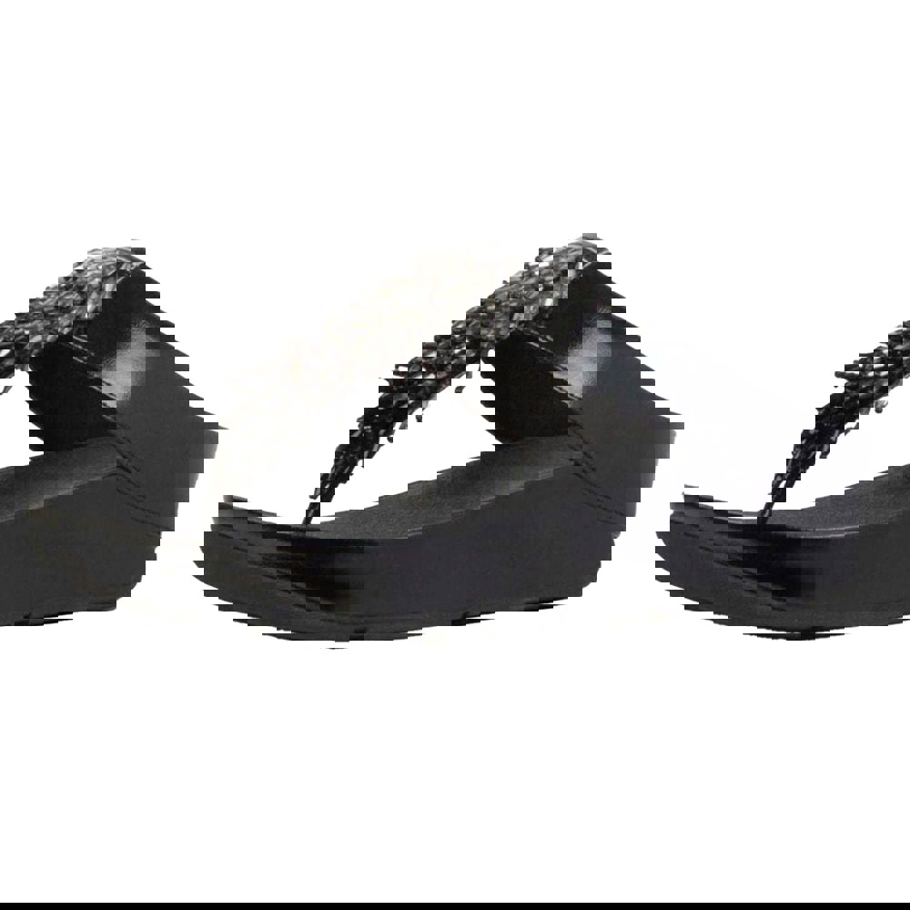These FitFlop Rumba Ombre toe post sandals offer a slip-on style with a low heel for easy everyday wear. The upper is made from soft faux leather, finished with a metallic ombre effect and embellished bead detailing for added interest. A post toe design keeps the look clean and minimal, while the cushioned midsole includes a Microwobbleboard construction.