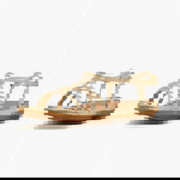 These women's cross strap sandals feature synthetic uppers, microfiber lining, rubber soles, a buckle closure, and Dynamicush cushioning with a flat heel under 2. 5cm for comfort