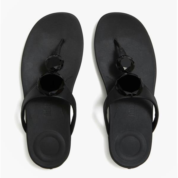 For a sleek option in warm-weather rotation, FitFlop SOLAY GLOSSY womens flip-flops bring a pared-back look with a polished finish. This black slip-on pair is made with a leather and polyurethane upper, keeping the profile clean and minimal. A flat heel maintains an understated silhouette that works easily with holiday separates and off-duty staples.