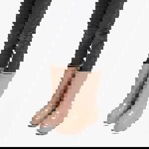 Kids' knee-high waterproof rain boots with rubber upper and sole, textile lining, pull-on style, flat heel, and round toe for casual wear