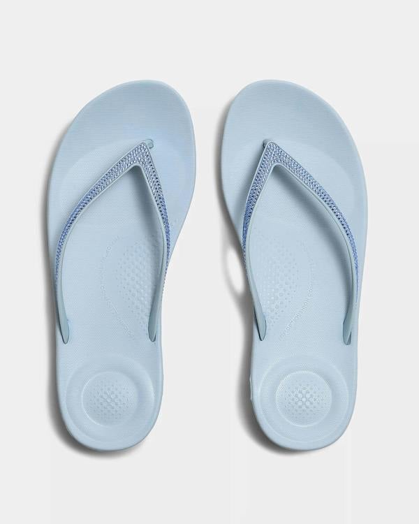 FitFlop brings a refined finish to warm-weather dressing with the IQushion Sparkle womens flip-flop. Kept slim and easy to wear, this slip-on style is set on an ultra-light iQushion midsole and finished with sparkling micro ‘crystals’ across the straps.