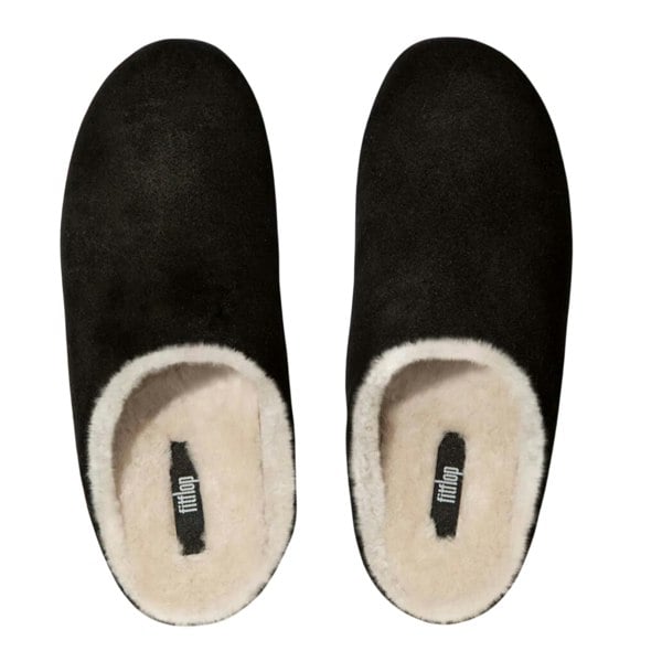 These women’s Chrissie slippers are made with a suede upper and a soft shearling lining. Finished in black with a plain design, they offer a clean, understated look for everyday wear at home.