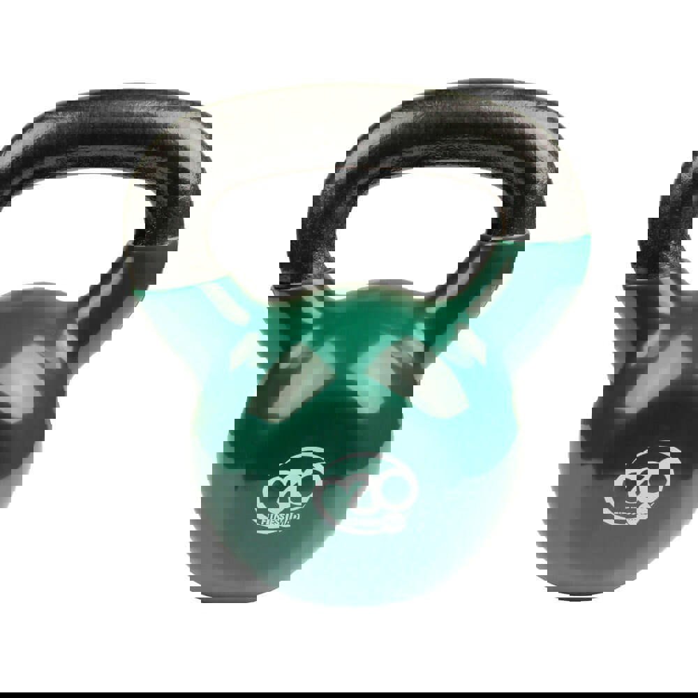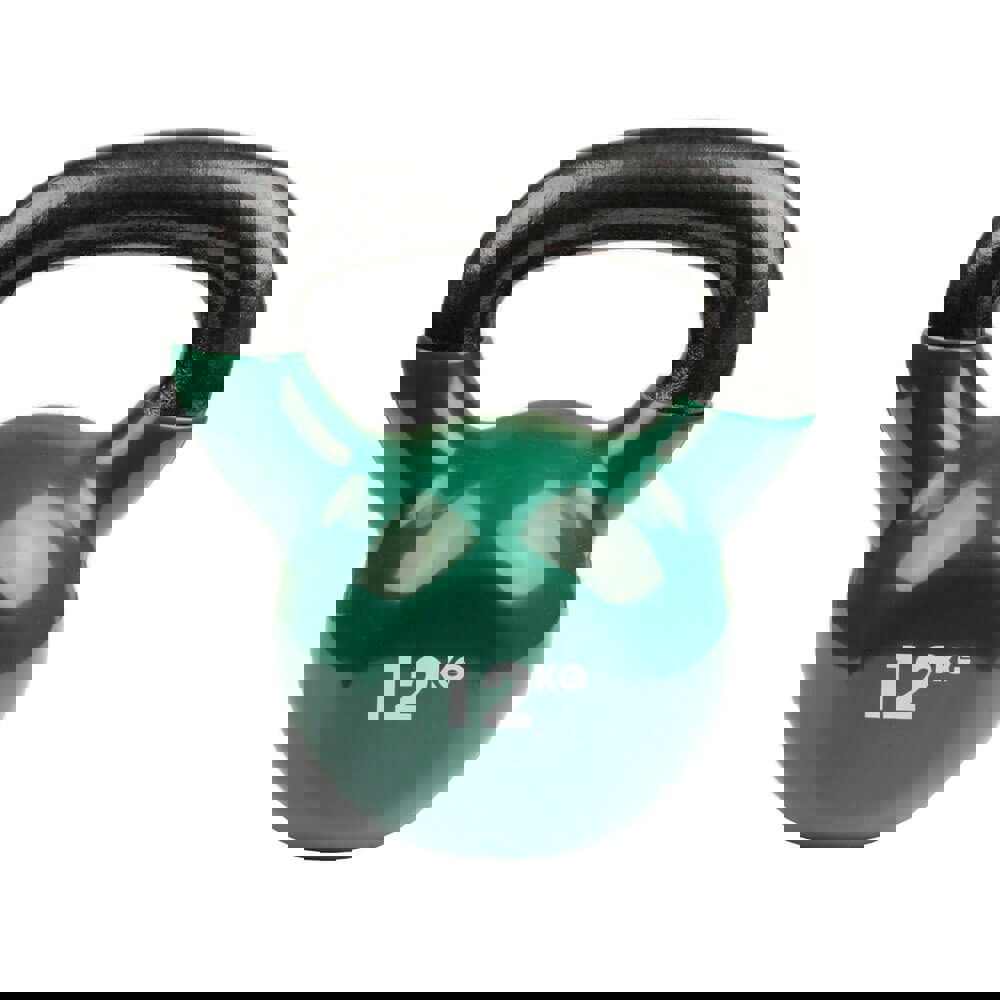 This cast iron kettlebell weighs 12kg but other weights from 4kg to 24kg are also available (see our website). The kettlebells are made with an oversized powder coated handle to help you maximise your motion and also get a fantastic grip whilst you work out. This kettlebell has a green heavy duty vinyl skin which has the weight clearly displayed on the side and helps to protect your floor.