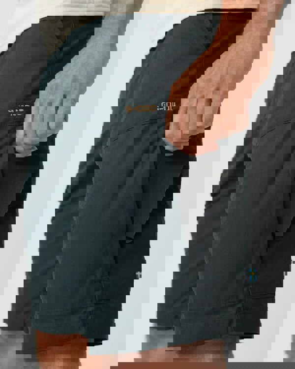 Built for warm-weather days outdoors, Fjällräven Karl Pro men’s shorts in Dark Navy 555 combine a technical cut with hard-wearing G-1000 Silent. The material blends recycled polyester with organic cotton, while a pre-shaped seat supports comfortable movement. Regular fit styling keeps the look clean and practical for summer wear at the cabin, in the forest or on the mountain.