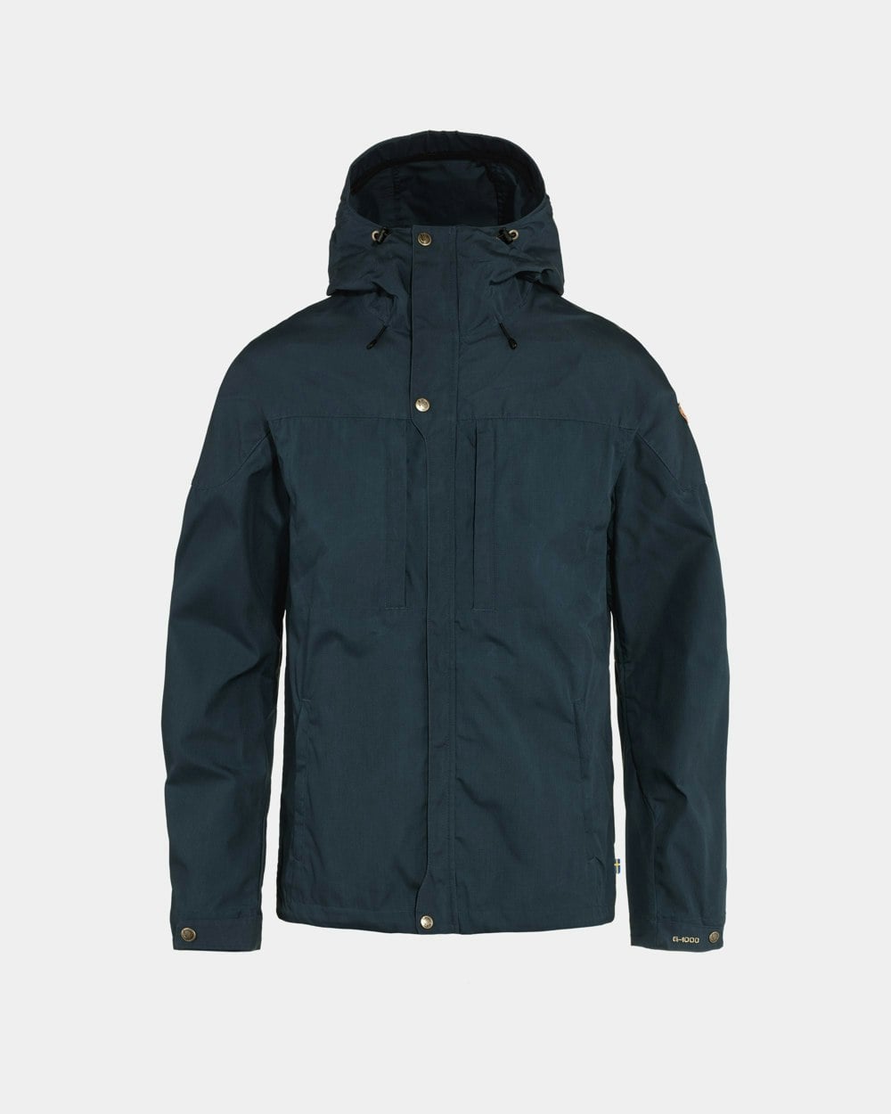 Hip-length outdoors jacket that is slightly longer in the back and has a fixed, adjustable hood. Just as comfortable trekking as it is when biking to and from work. It provides protection from the wind and light rain showers while also offering good ventilation, which means that you will not become as sweaty as you would when wearing a fully waterproof garment. It is made from G-1000 Lite and has G-1000 on the shoulders. Two vertical breast pockets and two side pockets, all of which are hidden behind flaps. Two-way zipper in the front hidden behind a protective flap that has push buttons at the hem, in the middle of the chest and at the chin. Adjustable hem and push buttons at the sleeve cuffs.
