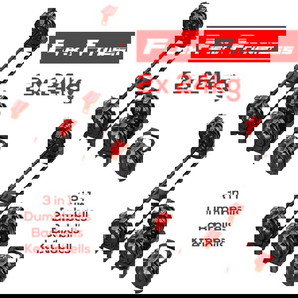 One is better than twelve: With 12 weight options ranging from 2kgs (4. 5lbs) to 24kg (53lbs), replace your cluttered weight rack with our sleek adjustable 3 in 1 dumbbell set. Enjoy smooth, hassle-free weight changes for an optimal workout experience.
