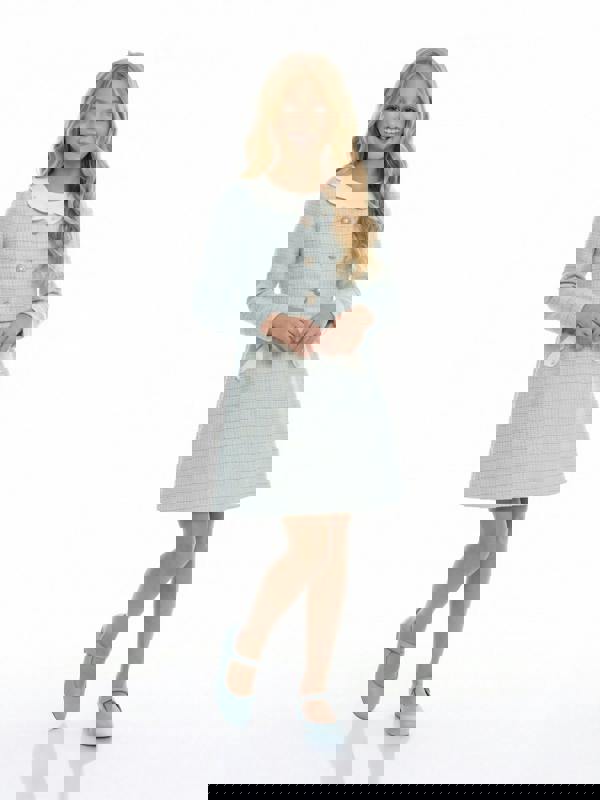 The jacket is finished with an intricate beaded collar and embellished buttons, alongside long sleeves for a polished silhouette. Complementing it, the dress features pockets with embellished detailing, adding considered interest while keeping the look practical for day-to-evening plans.