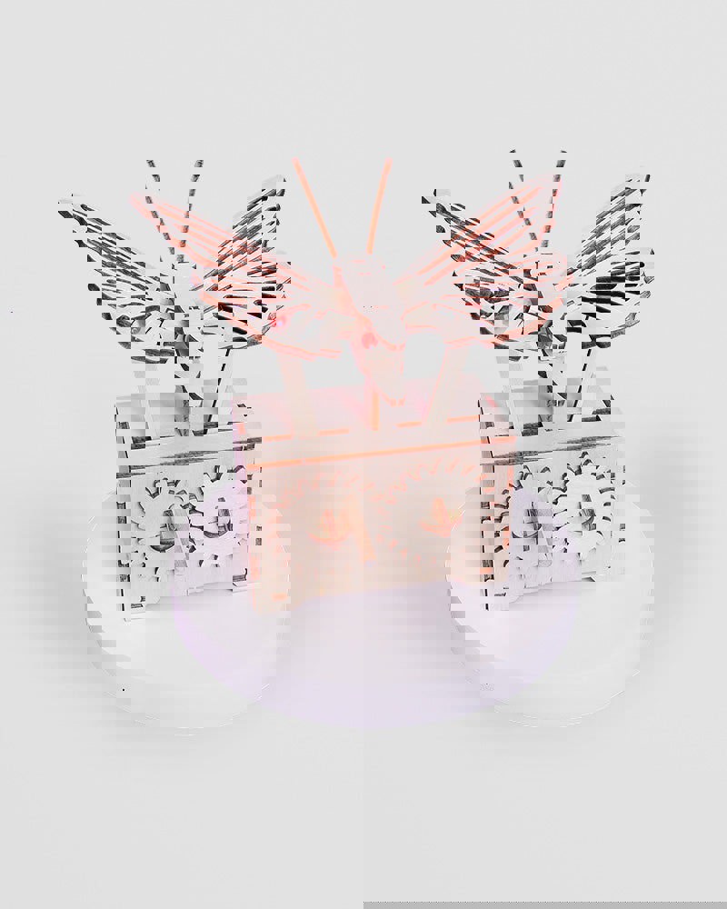 Made from eco-friendly wood with a battery-powered mechanism, this charming kit comes with everything you need to get flapping. No tools, no tantrums, just pure mechanical magic.