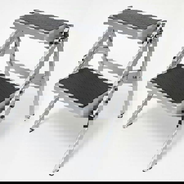 From SecureFix Direct, this Twin Folding Aluminium Non-Slip Step is a compact double Step Stool designed to provide stable access in the home, workplace, caravan or motorhome. Its twin platform design offers extra height for everyday tasks, from reaching high cupboards and shelves to painting and decorating, while also working well as a practical step for a trampoline or hot tub.