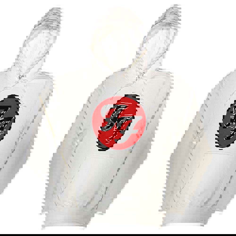 An official licensed Foo Fighters Unisex Pullover Hoodie featuring the 'FF Logo' design motif. This high quality Pullover Hoodie is available in a white colourway. High quality cotton unisex pullover hoodie featuring drawstring hood, kangaroo style pouch pocket and front printing. Comes in a wide range of sizes from Small through XX-Large, subject to availability.