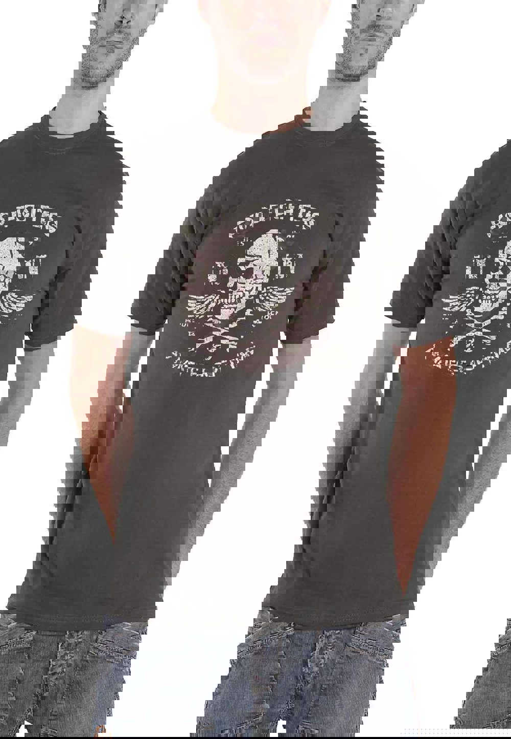 An official licensed Foo Fighters Tee featuring the 'Matter of Time' design motif. This high quality Tee is available in a charcoal grey colourway. Classic fit soft-style cotton short sleeved tee with crew neck. Comes in a wide range of sizes from Small through XX-Large, subject to availability.
