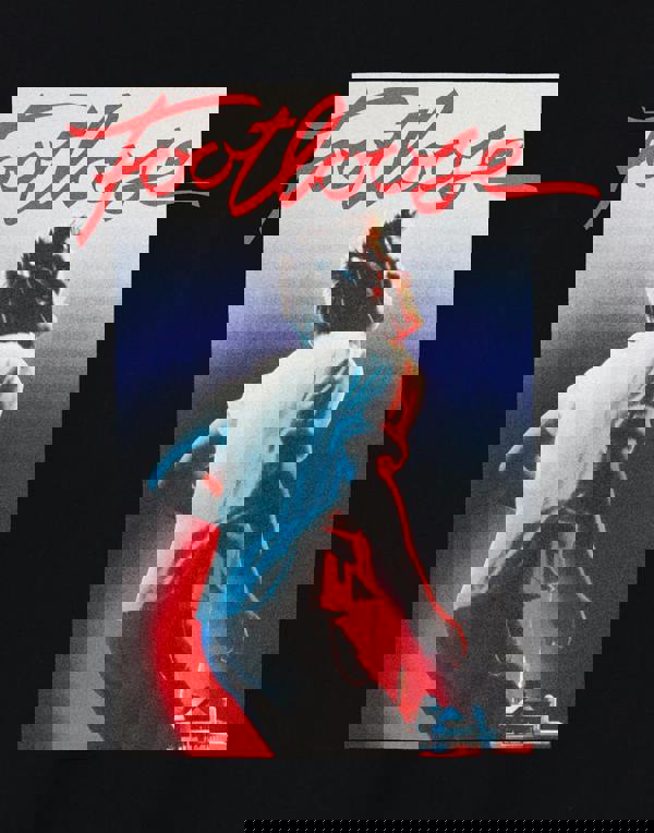The black t-shirt comes with short sleeves and a crew neck featuring a graphic print of Ren dancing as seen in the classic movie