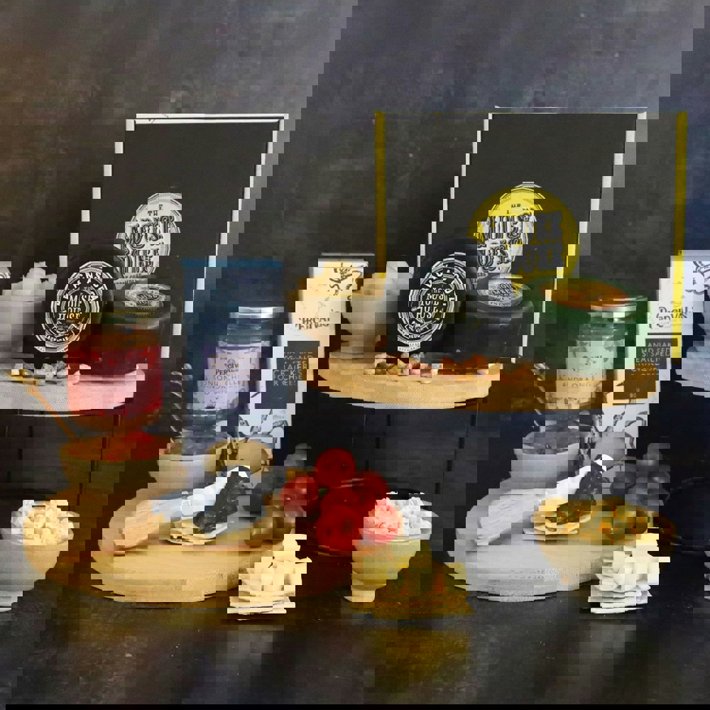 A tasty selection just ‘For Him’. A great gift for that special man in your life for an anniversary or a birthday, providing all the bits you’d want on a cheeseboard! We have chosen the best cheddars that pair perfectly together, providing a selection of both contemporary and traditional cheeses- including our unique and delicious Black as Coal cheddar which has activated charcoal incorporated and our creamy best seller; Finest Vintage which includes calcium crystals adding a delicious lactate crunch and sweet note starter.