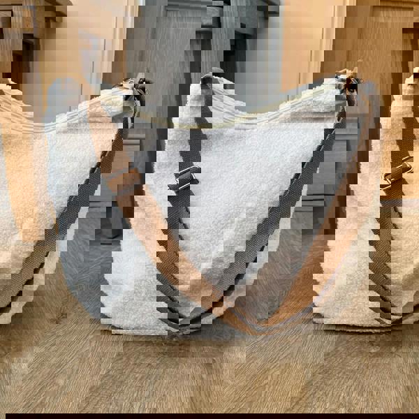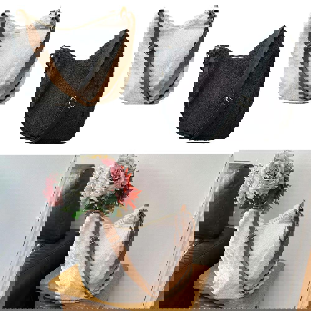 This Teddy Slouch Tote Bag offers a relaxed silhouette combined with practical everyday functionality. Crafted in a soft teddy fabric, the slouchy design creates an effortless, casual look that is both comfortable and stylish.