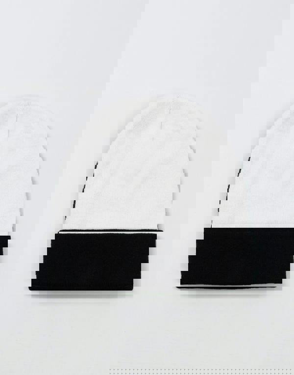 With its neutral colour scheme of black, gray, and white, this beanie matches easily with various outfits, making it a practical addition to any winter wardrobe