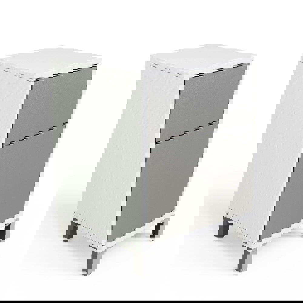 Smart technology side table featuring wireless phone charging, full spectrum voice & app controlled LED back mood lighting. Textured matt white finish for a sleek modern look and matt grey doors. Super quick assembly with the patented click together furniture system. Superfast, super strong and no visible assembly fixings.
