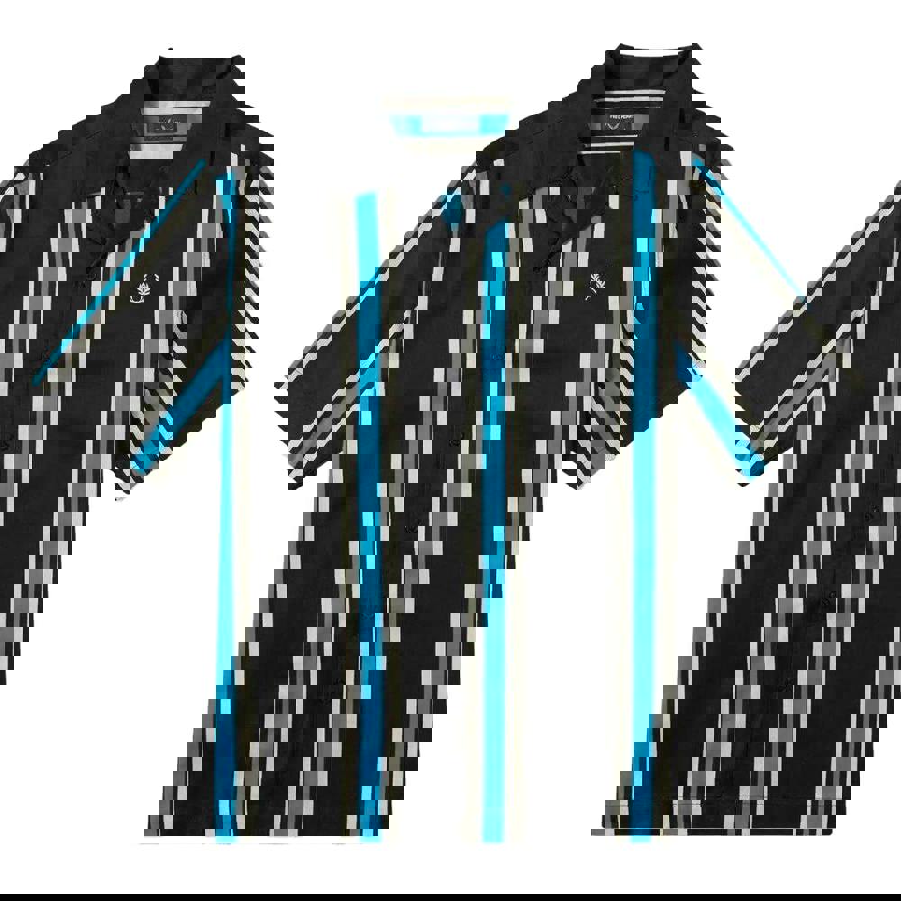 This men’s shirt pairs a striped finish with a logo detail for a clean, graphic look. Made from 100% cotton, it has a button-down fastening and a revere collar, keeping the silhouette sharp while remaining easy to wear. The short-sleeved cut suits warmer days and casual styling, whether worn on its own or layered open over a tee.