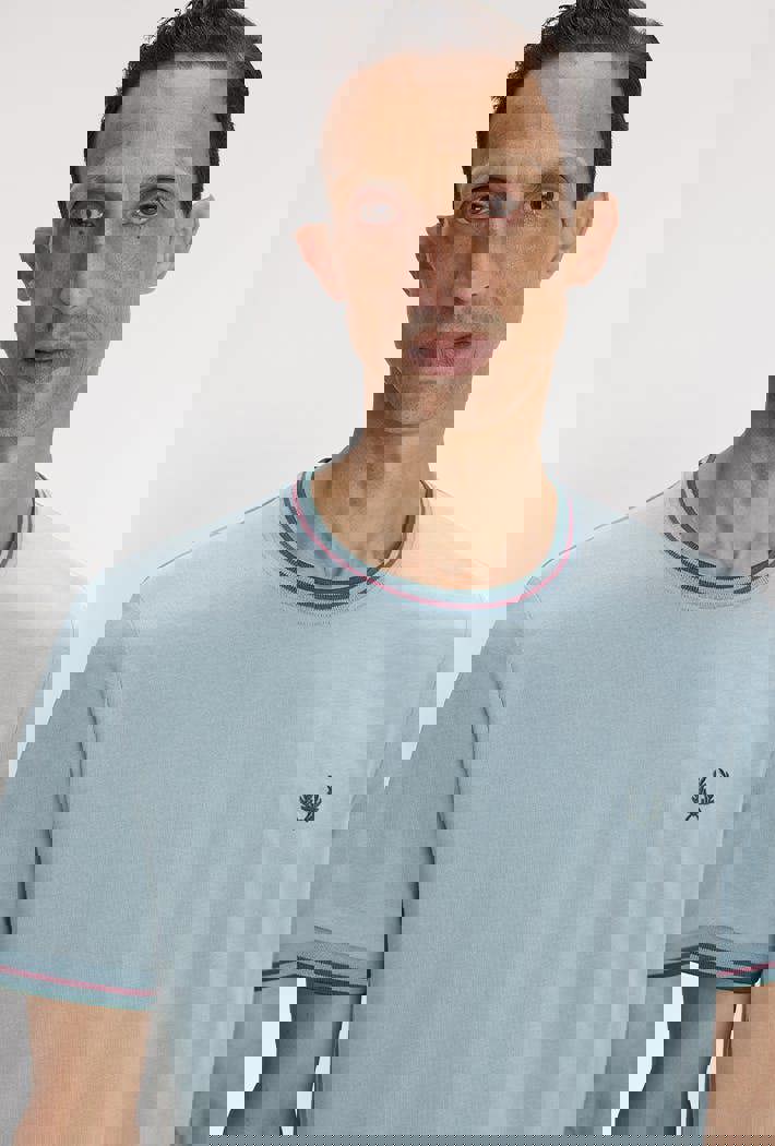 Cut in classic sports jersey cotton, the Fred Perry Twin Tipped T-Shirt brings a clean finish to everyday dressing. This crew neck style comes in a regular fit, with twin tipping at the neckline and cuffs for a crisp, defined edge. A contrast Laurel Wreath embroidered logo sits on the left hand chest, keeping the look unmistakably Fred Perry.