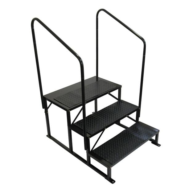 Our Freestanding Caravan Steps have a handrail attached on both sides for extra support whilst climbing and descending making them the perfect choice for people less mobile. These fantastic Motorhome Steps are supplied with hard wearing non slip rubber mats that help to ensure that our Caravan Stairs are safe to use in all weather conditions. The surface of the mats are also textured to privide etra grip. Being manufactured from high quality materials means that our steps are exceptionally strong and durable with a user capacity of up to an amazing 300KG providing complete peace of mind and confidence. They also have a black powder coated finish to protect them from rusting and corrosion making them perfect for use all year round. These amazing steps also have anchor points on the bottom that can be used for bolting these steps to the ground, fixings are included.