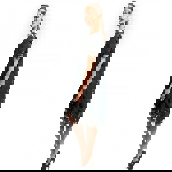 With a simple shift silhouette, the Classic Crepe and Lace Dress has an effortless elegance. It has a slightly longer hem at the back, and a richly patterned devoré insert along the centre. Add a pop of colour with your lipstick and handbag.