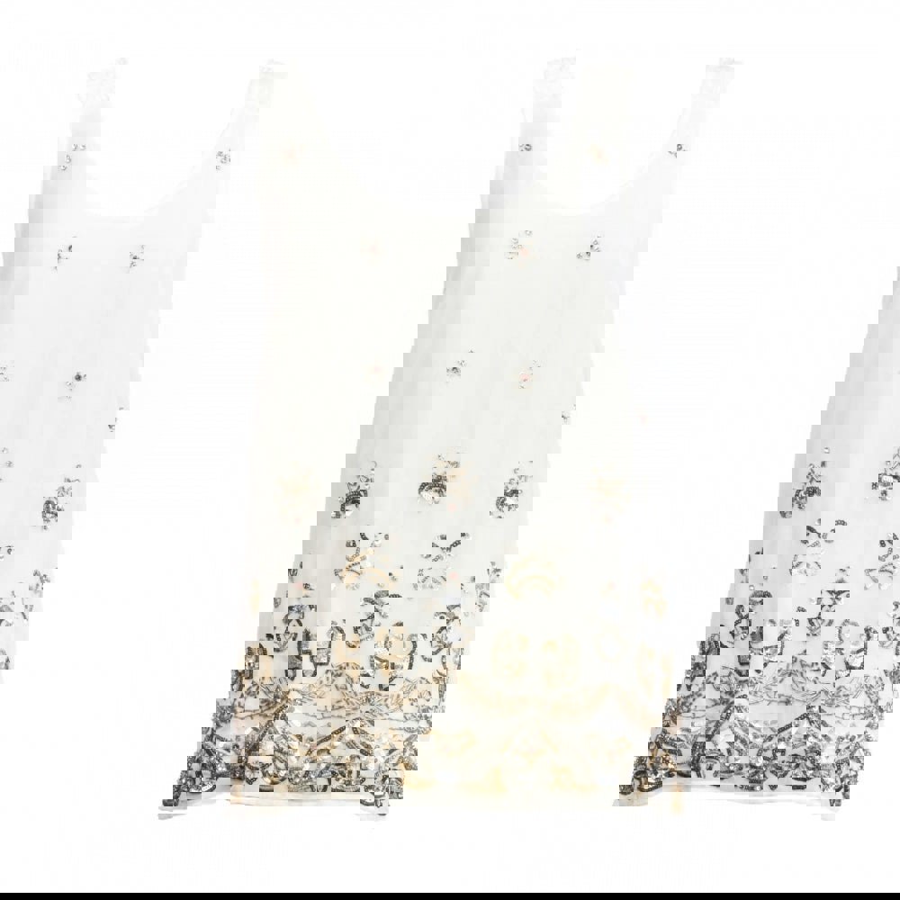 Made from lightweight crepe, this sleeveless style features a scoop neckline, luxurious velvet shoulder straps and sparkling sequin and bead embellishment to the soft overlay.