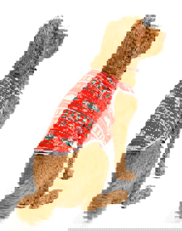 Officially licensed and exclusive to Vanilla Underground, the pet's outfit comes in red featuring an all-over print of the Central Perk logo, snowflakes, and Christmas trees