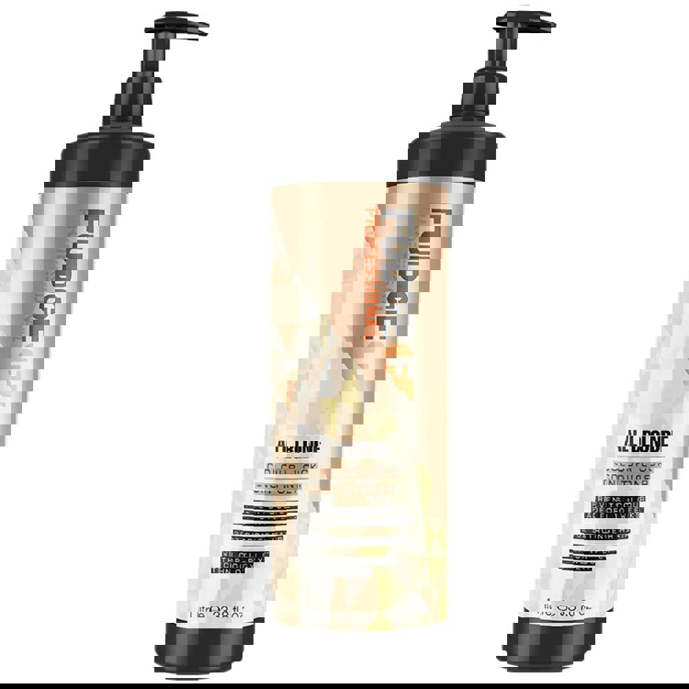 The Fudge Professional All Blonde Colour Lock Conditioner is the perfect formula, designed to support hair colour and promote vibrancy. Suited to all shades of blonde the conditioner envelops the locks in colour protecting action while nourishing from root to tip. Infused with lemon extract, the formula bursts with brightening properties to help promote a natural looking shine. OptiPLEX technology is designed to reconstruct bonds that may be suffering from chemical, styling and environmental damage. Equipped with FragranceFuse technology the shampoo infuses every strand with a luxurious and long lasting scent
