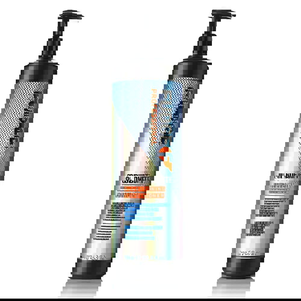 After shampooing with Cool Brunette Shampoo, smooth evenly through hair and rinse thoroughly to reveal cool, strong brunette hair.