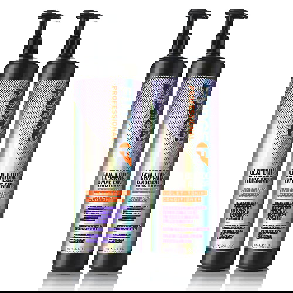 Double up and save on your favourite Clean Blonde Damage Rewind Purple Violet Toning & Repair Conditioner in their supersize 1000ml bottle.