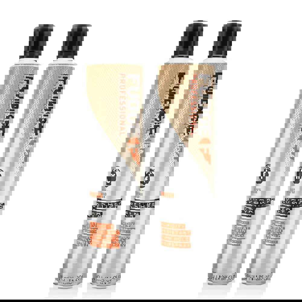 Ideal for keeping your styling staples topped up, Fudge Professional Skyscraper Extra Firm-Hold Hairspray Double pairs two 300ml sprays in one set. This extra-firm hold formula helps keep your chosen look in place while maintaining a flexible finish for up to 24 hours.