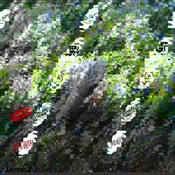 This incredibly lifelike Pug ornament with intricate details captured in bronze will amuse any dog owner. With beautiful attention to every detail, this statue is made using the Cold Cast Bronze technique. This allows a weighty and neat touch at a fraction of the price of solid bronze by using high-grade resin with bronze powder. Extremely limited production only for DGS. A 'Must Have' for any Pug lover that will be genuinely admired for many years to come. This very realistic pug statue would make an elegant addition to any garden, lawn, patio, porch or entryway.