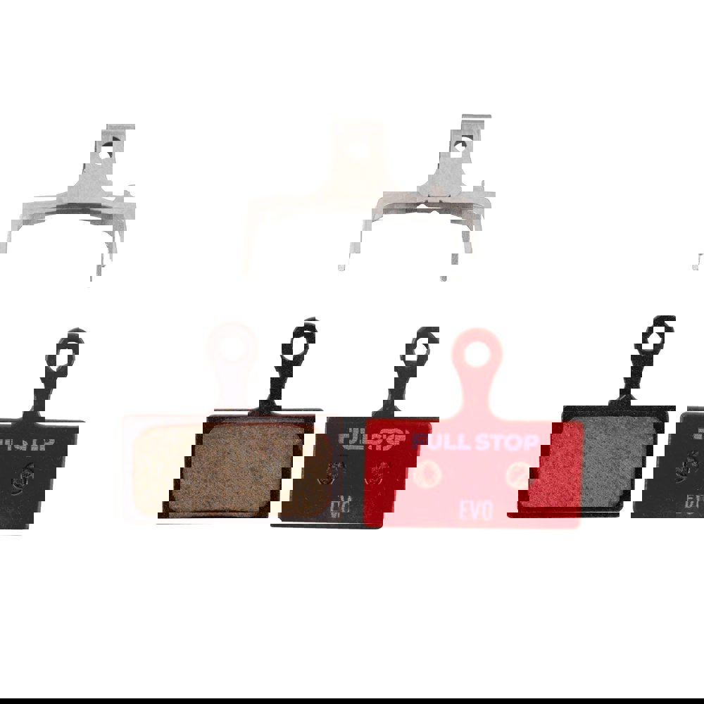 FullStop Evo Semi-Metallic pads combine the positives from our regular semi-metallic and sintered pads into a single compound. Offering a short bedding in period, the Evo pads offer a powerful initial bite and progressive feel in all situations - wet and dry. This special blend material results in a pad that"s quiet and hard-wearing - perfect for E-bikes, aggressive off road or high performance road, the Evo pads are a master of all.