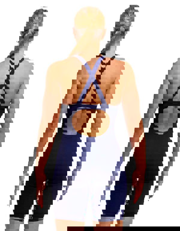 The Blue Bits Fast Training One Piece Legsuit merges Funkita's technical expertise with a fun geometric pattern in blues and blacks at the front of the legsuit. Wide navy, shoulder straps and comprehensive upper leg coverage work together to stabilise your stroke, letting you concentrate on training intensity. The precision-engineered panelling in navy blue, creates a contoured profile that responds naturally to your body's movements in the water. Constructed from ECO-C Infinity, a fully chlorine-resistant fabric derived from recycled plastics, this legsuit withstands rigorous pool use whilst maintaining colour vibrancy and structural integrity season after season.