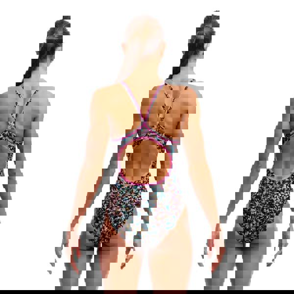The Copper Cluster Diamond Back Swimsuit from Funkita features the beautiful butterfly prints all over. The double bind strap will provide a secure and supported fit across the bust and shoulders, while the front lining and medium leg cut offer moderate coverage. Made from Eco C-Infinity fabric, it is 100% chlorine-resistant and long-lasting, suitable for frequent swimming.